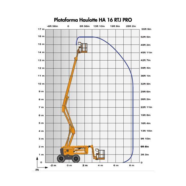 - ✔️ Plataforma articulada con alcance de hasta 16 metros